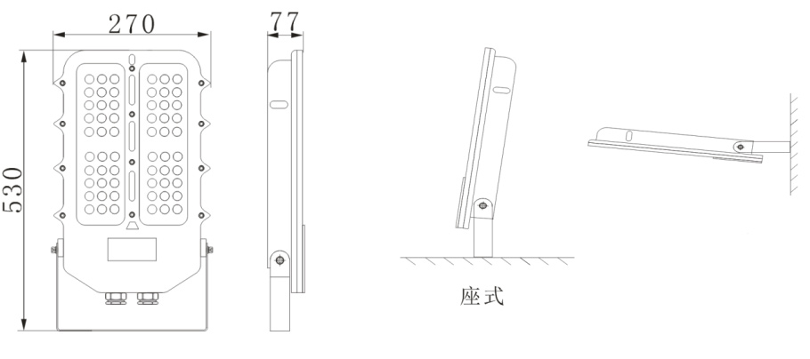 ★壁式安装旋转角度可调,电缆布线,吸顶式,嵌入式安装可采用电缆或钢管布线。